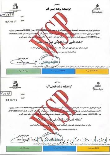 اخذ دومین و سومین گواهینامه برنامه ایمنی آب خوزستان برای شهر جنت مکان و روستای تکیه باغملک